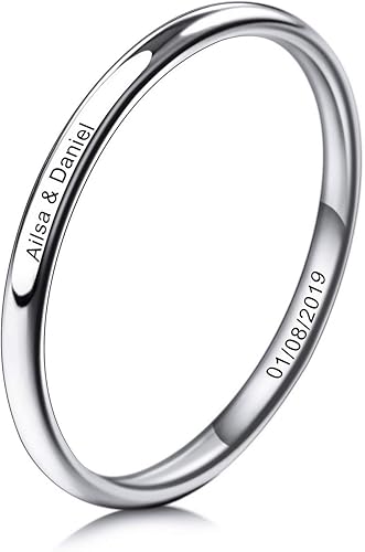 Memediy 2 10mm Silber Ton Edelstahl Ring Band Hochzeit Lieben Gravur Amazon De Schmuck