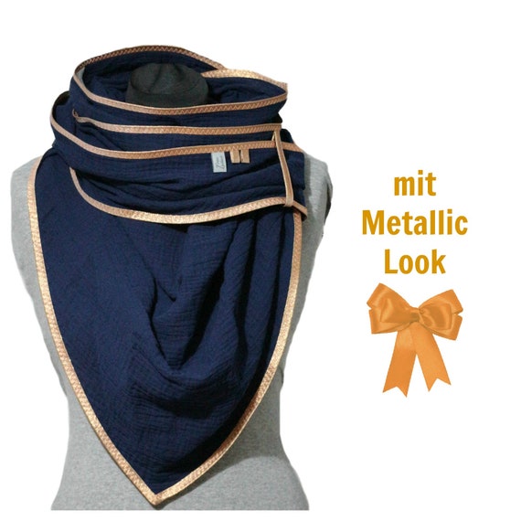 Triangle Scarf Rose Gold Muslin Muslin Cloth Dark Blue Etsy