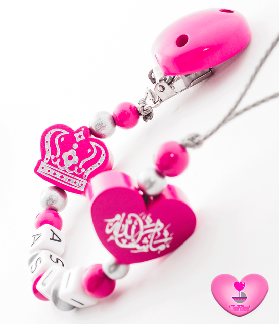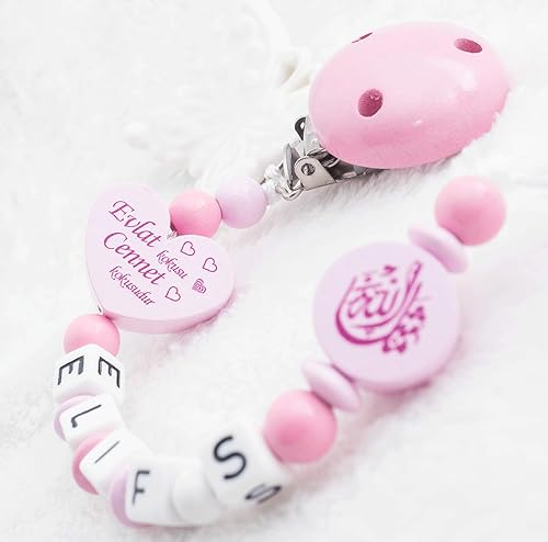 Schnullerkette Mit Namen Wunschname Baby Mashallah Evlat Kokusu Cennet Turkisch Madchen Rosa Clip Holz Arabisch Amazon De Handmade