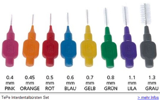 Zahnzwischenraumreinigung burste. Weicher, flexibler Griff angenehme HandHabung ausdauernder und belastbarer Draht exakte, sichere Führung der Bürste bessere Reinigungsergebnisse angenehmes Gefühl – erhöhte Compliance Zahnzwischenraumreinigung Tandex Flexi Interdental Bürsten 0,8 mm Lila noch keine Bewertung vorhanden Abb ähnlich PZN. Ohne geeignete Mittel zur Zahnzwischenraumreinigung kann man Zähne und Zahnfleisch auf Dauer nicht gesund halten es drohen sowohl Karies als auch Parodontitis, wenn der Zahnzwischenraum ständig mit bakterieller Plaque ausgefüllt ist Die Benutzung von Zahnseide oder Bürstchen sollte jedoch unbedingt in der Praxis durch geschulte Fachkräfte demonstriert werden, weil man mit falscher. Den besten nachgewiesenen Reinigungseffekt bieten derzeit die Zahnzwischenraumbürsten Eine geeignete Bürste reinigt den kompletten Zwischenraum und lässt sich mit mittlerem – also nicht zu festem und nicht zu leichtem – Druck ein und ausführen Ist sie zu dünn, reinigt sie nicht gut genug, ist sie zu dick, besteht Verletzungsgefahr.