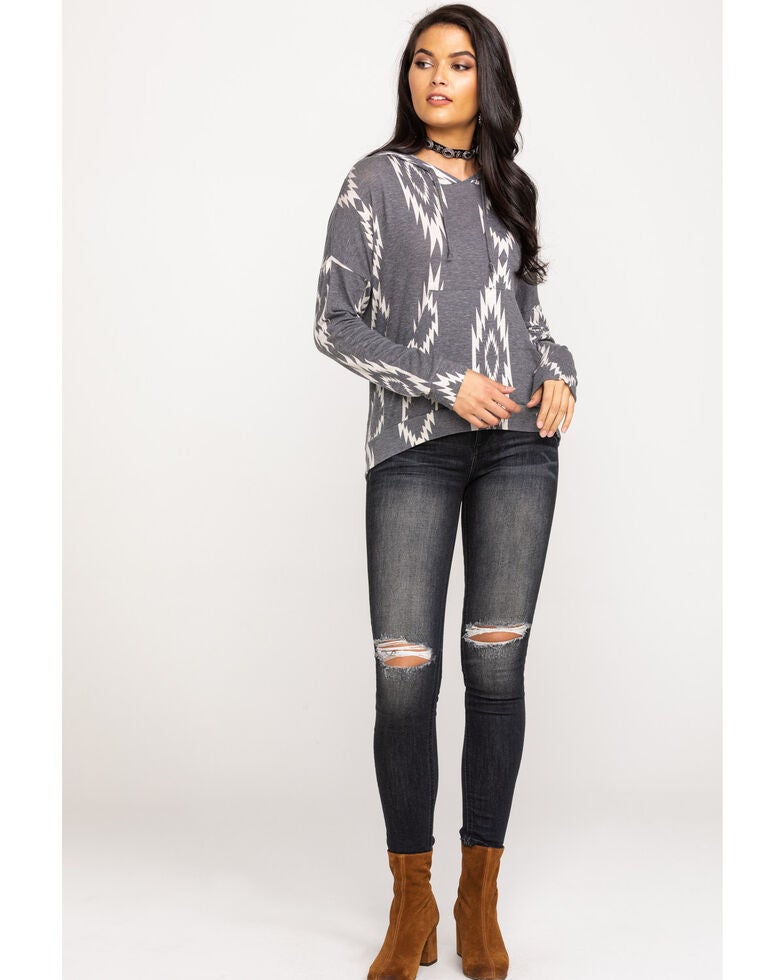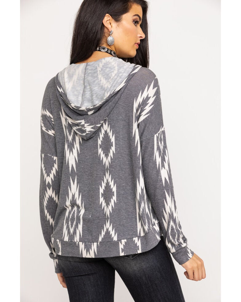 Rock Roll Cowgirl Women S Charcoal Aztec Print Pullover Hoodie Boot Barn