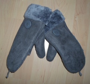Dicke Warme Damen Handschuhe Faustlinge Veloursoptik Mit Kunstfell Grau Gr M Ebay