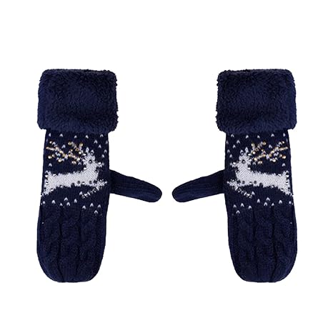 Damen Handschuhe Faustlinge Rentier Fleece Gefuttert Strass Warm Winter Eg