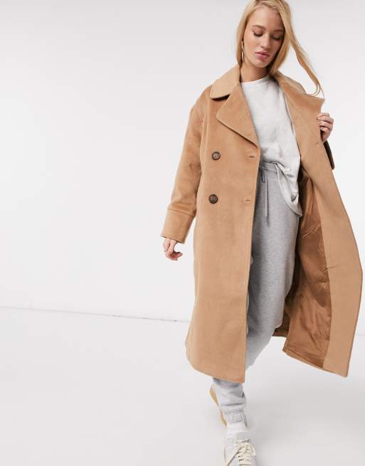 In The Style Emily Shak Lang Geschnittener Wollmantel Mit Taillenschnurung In Camel Asos