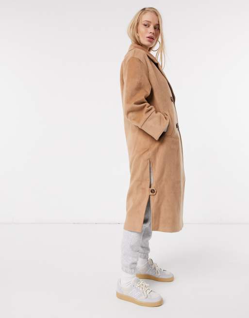 Y A S Lang Geschnittener Wollmantel Mit Schildpatt Knopfen In Camel Asos