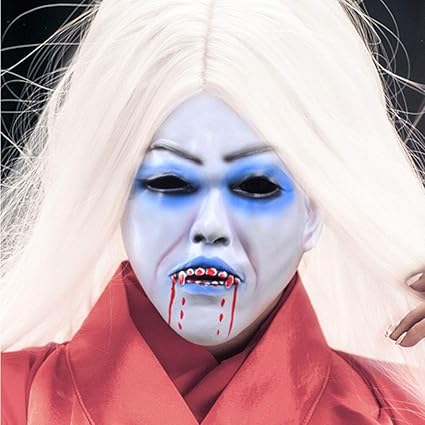 Weisshaarige Hexe Blutende Vampir Maske Weibliche Geist Gruselige Skorpion Maske Schreckliches Gesicht Halloween Weihnachten Halskette Masken Color Weiss Size 22 21 67cm 9 8 26 Inch Amazon De Kuche Haushalt