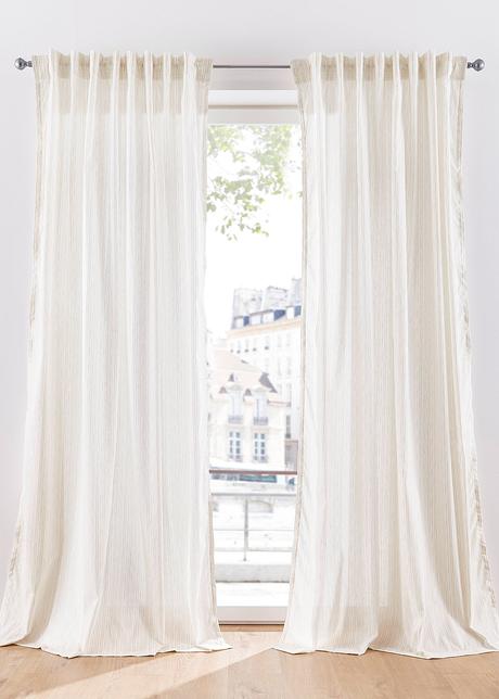 Blickdichter Vorhang Mit Frischem Streifen Druck Weiss Beige Multifunktionsband