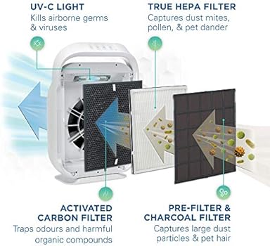 Amazon Com Invisiclean Claro Air Purifier 4 In 1 True Hepa Ionizer Carbon Uv C Sanitizer Air Purifier For Allergies Pets Home Large Rooms Smokers Dust Mold Allergens Odor Elimination