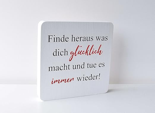 Holzbild Mit Spruch Finde Heraus Was Dich Glucklich Macht Und Tue Es Immer Wieder Weiss 15 X 15 Cm Amazon De Kuche Haushalt