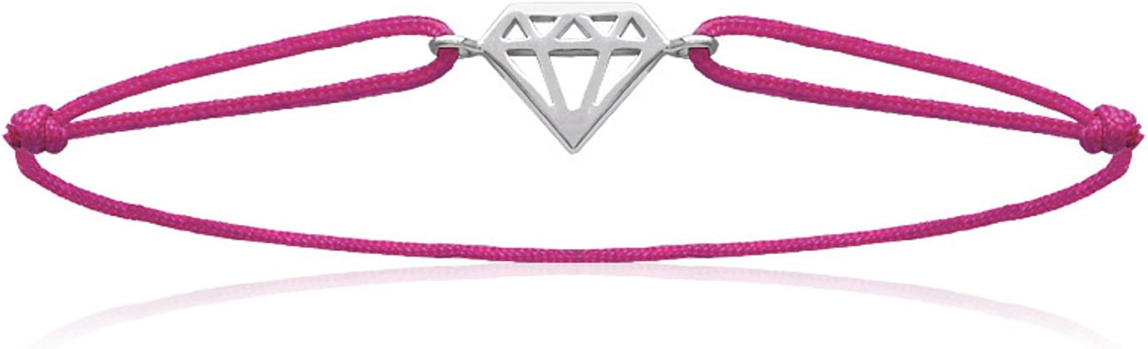 Les Plaisirs De Stella Bracelet En Argent 925 000 Cordon Coton Rose Reglable Symbole Diamant Amazon Fr Bijoux