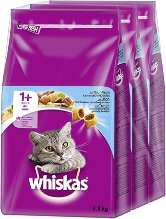 Whiskas Katzenfutter Trockenfutter Adult 1 Mit Thunfisch 3 Beutel 3 X 3 8kg Amazon De Haustier