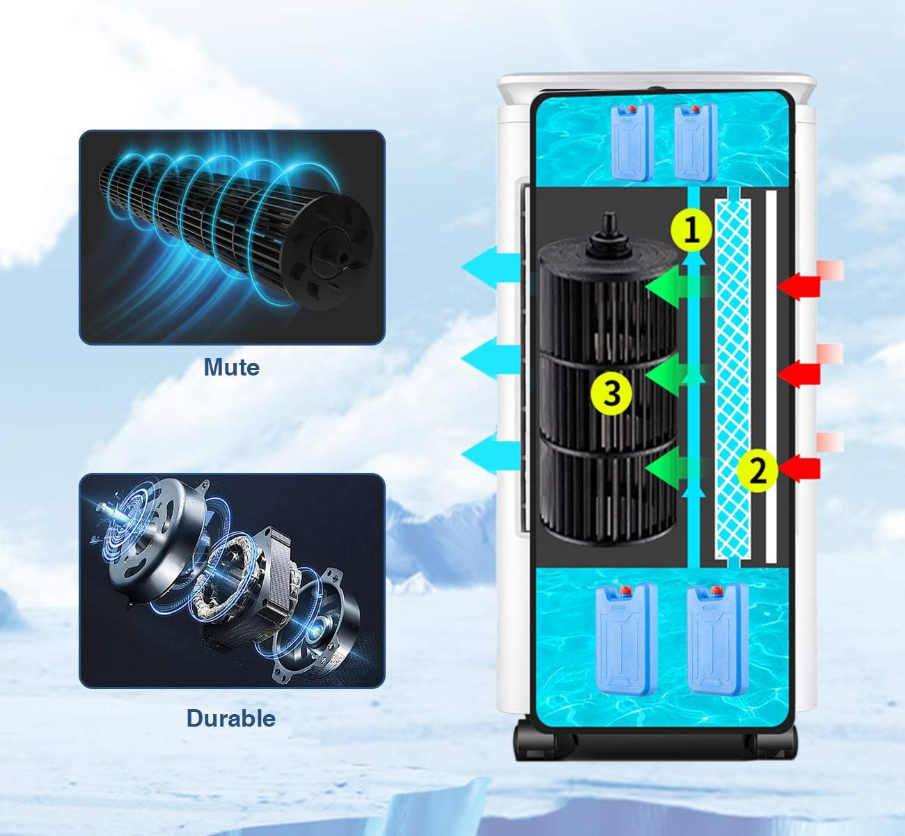 Ventilator Mit Luftbefeuchter Tragbar 3 In 1 Klimaanlage Luftkuhler 4 Liter 2 Blocke Kuhlakkus Fur Gefrierschrank Fernbedienung Programmierer Fur Abschaltung Filter Amazon De Kuche Haushalt