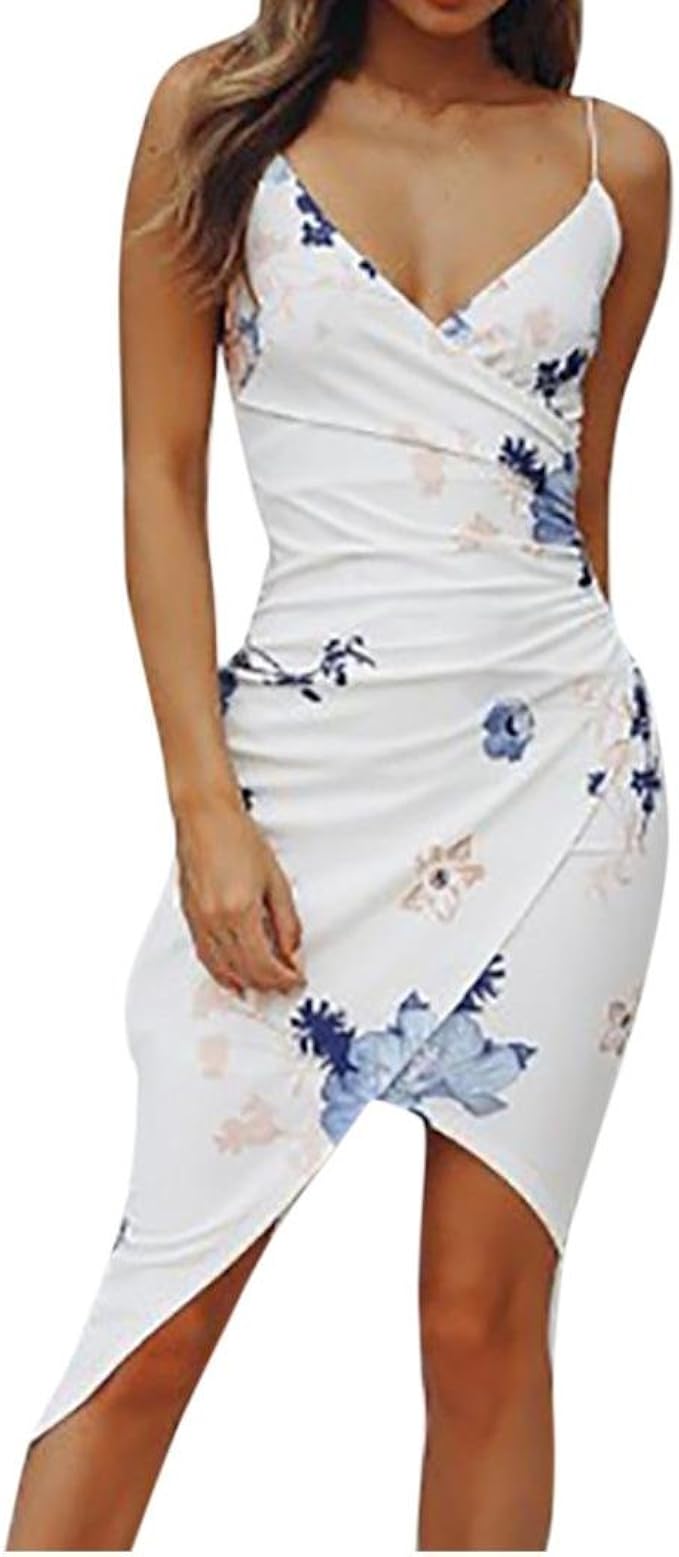 Binggong Kleid Damen Frauen Sexy V Ausschnitt Druck Armellos Gesass Camisole Beach Dress Ruckenfreies Kleid Weisses Wickelkleid Elegant Abendkleider Amazon De Elektro Grossgerate
