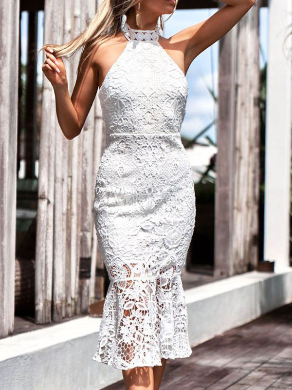 Weisses Spitzenkleid Ruckenfrei Armelloses Damen Kleid Milanoo Com