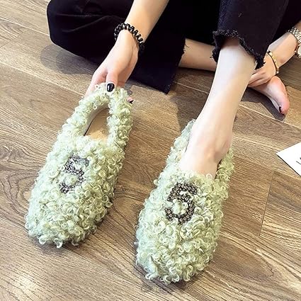Skyropng Damen Muller Schuhe Nummer 5 Grune Haarige Herbst Winter Wilde Freizeitaktivitaten Einzelne Schuhe Baotou Enge Schuhe Faule Erbsen Schuhe Muller Kunsthaar Flachem Absatz Frauen Slipper 35 Amazon De Sport Freizeit