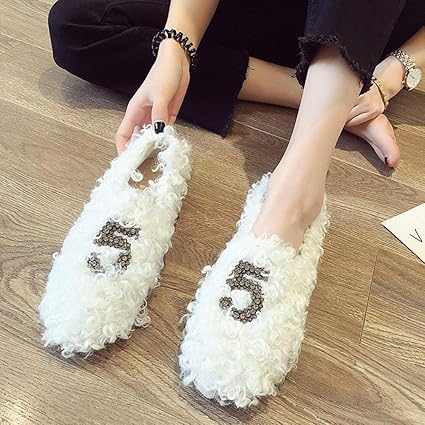 Skyropng Damen Muller Schuhe Nummer 5 Weiss Behaart Herbst Winter Wilde Freizeitaktivitaten Einzelne Schuhe Baotou Enge Schuhe Faule Erbsen Schuhe Muller Kunsthaar Flachem Absatz Frauen Slipper Amazon De Sport Freizeit