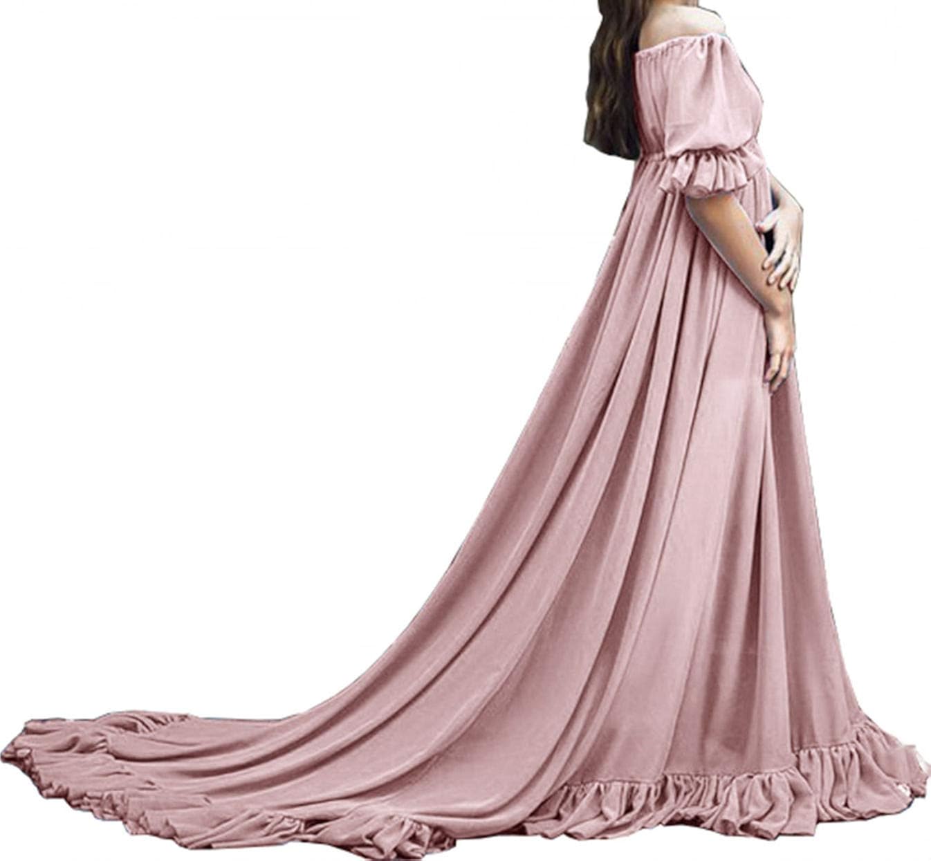 Ruschen Off Shoulder Kleid Lang Umstandskleider Hochzeit Fotografie Schwangerschaftskleid Umstands Strandkleid Elegantes Kleider Fur Festliche Anlasse Rosa Cocktailkleid Abendkleid Chiffon Amazon De Bekleidung