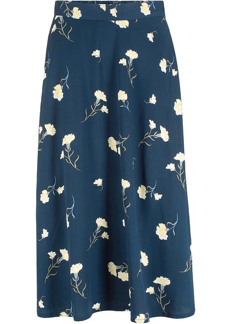 Locker Falllender Viskoserock Mit Elastischem Bund Dunkelblau Geblumt