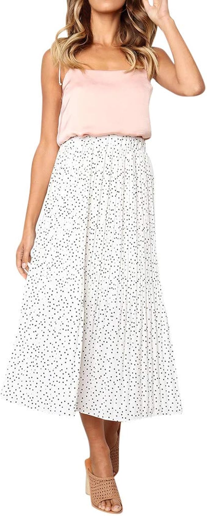 Rock Punkte Damen Wadenlang Sommer High Waist Schick Elegant Rocke Frauen Viskose Flatterndem Midirock Amazon De Bekleidung