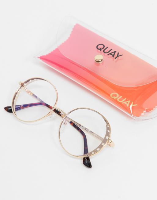 Quay Seeing Stars Runde Blaulicht Brille Fur Damen In Gold Asos