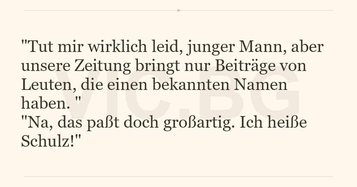 Tut Mir Wirklich Leid Junger Mann Aber Unsere Zeitung Bringt Nur Beitrage Von Leuten Die Einen Bekannten Namen Haben