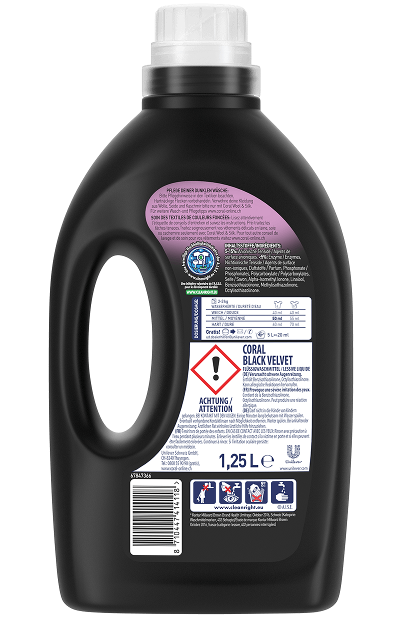 Coral Waschmittel Flussig Fur Intensives Schwarz 22 Waschladungen Hygienisch Reine Wasche Schutz Vor Ausbleichen Black Velvet Flussigwaschmittel 1 X 1 1 L Amazon De Drogerie Korperpflege