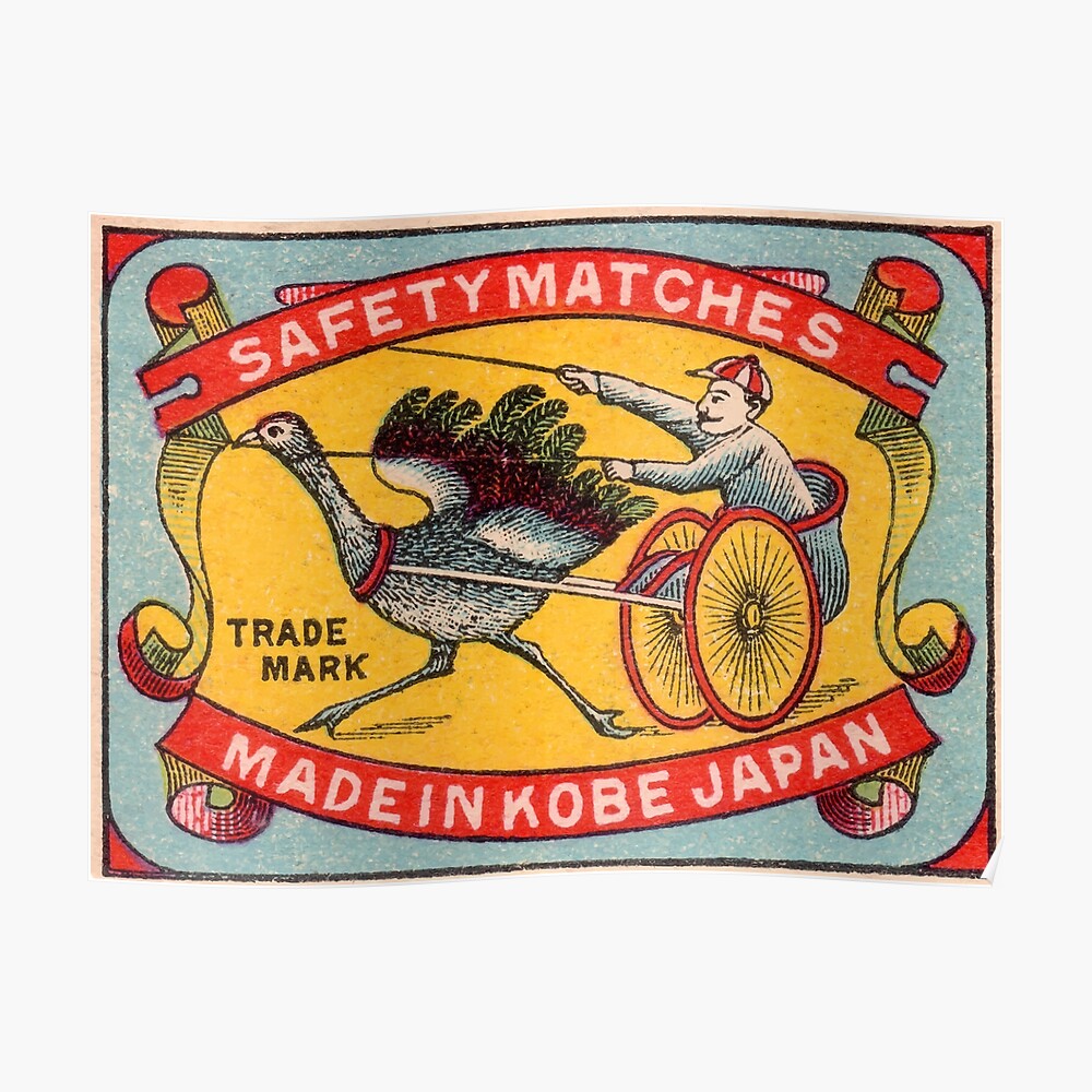 Antikes Streichholzschachtel Aufkleber Strauss Geschirr Laufen Kobe Japan Wandbehang Von Retrographics Redbubble