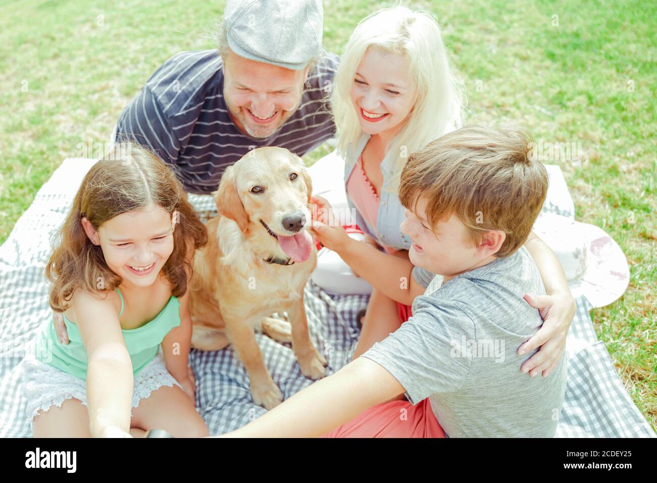 Gluckliche Familie Macht Ein Selfie Fur Den Hund Ist Nicht Sehr Wichtig Eltern Und Kinder Haben Spass Im Urlaub Reisen Urlaub Und Liebeskonzept F Stockfotografie Alamy