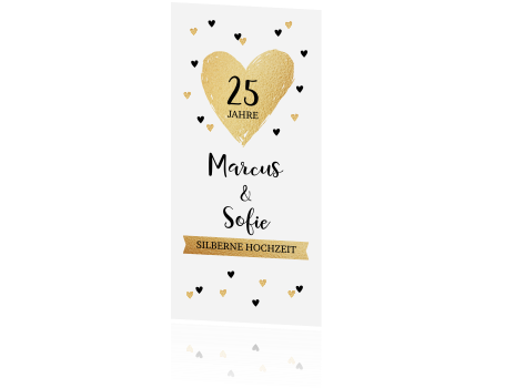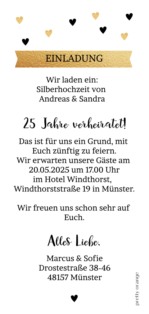 Witzige Einladung Zur Silberhochzeit Mit Herzchen In Schwarz Und Gold