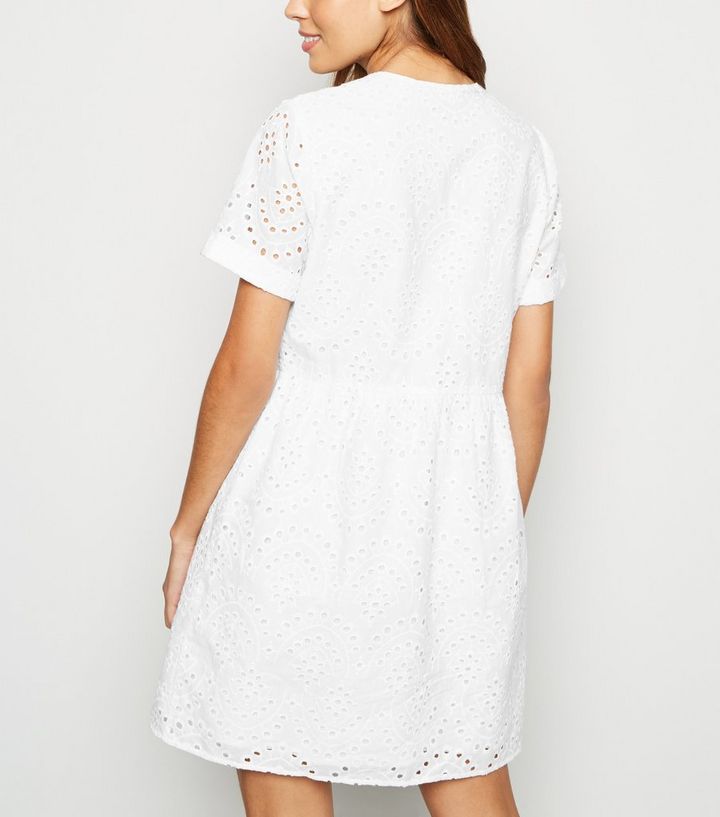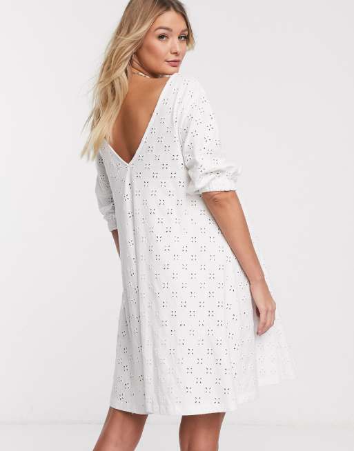Asos Design Maternity Weisses Mini Hangerkleid Mit Puffarmeln Und Lochstickerei Asos