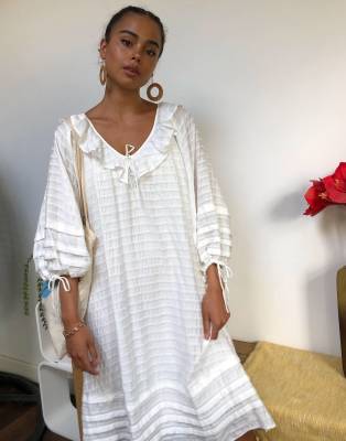 Other Stories Weisses Hangerkleid Aus Bio Baumwolle Mit Geruschtem Kragen Otslezhivanie Ceny V Asos Ru