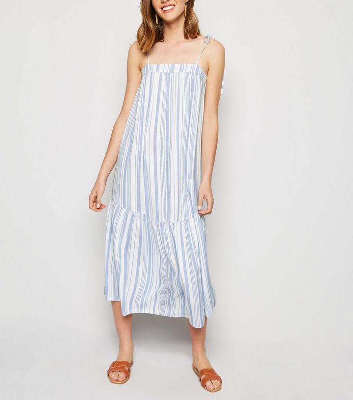 Weisses Gestuftes Hangerkleid In Midilange Mit Streifen New Look