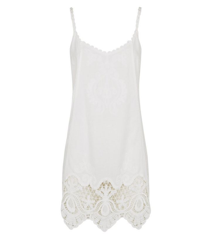 Weisses Hangerkleid Mit Hakeleinsatz Und Kaseleinen New Look