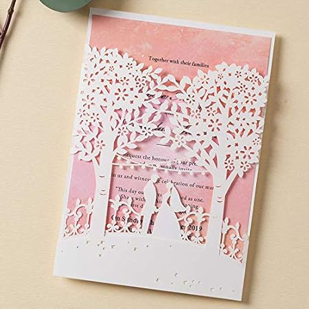 Weiss Rosa Wishmade Laser Cut Trees Hochzeitseinladungen Karte Stuck Braut Und Brautigam Design Elegante Verlobungskarte Einladungskarten Mit Umschlagen