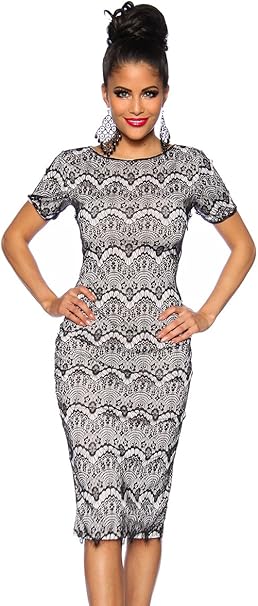 Yourdesignerz Weisses Etui Kleid Mit Schwarzer Spitze Und Nahtreissverschlus Rundhals Amazon De Bekleidung