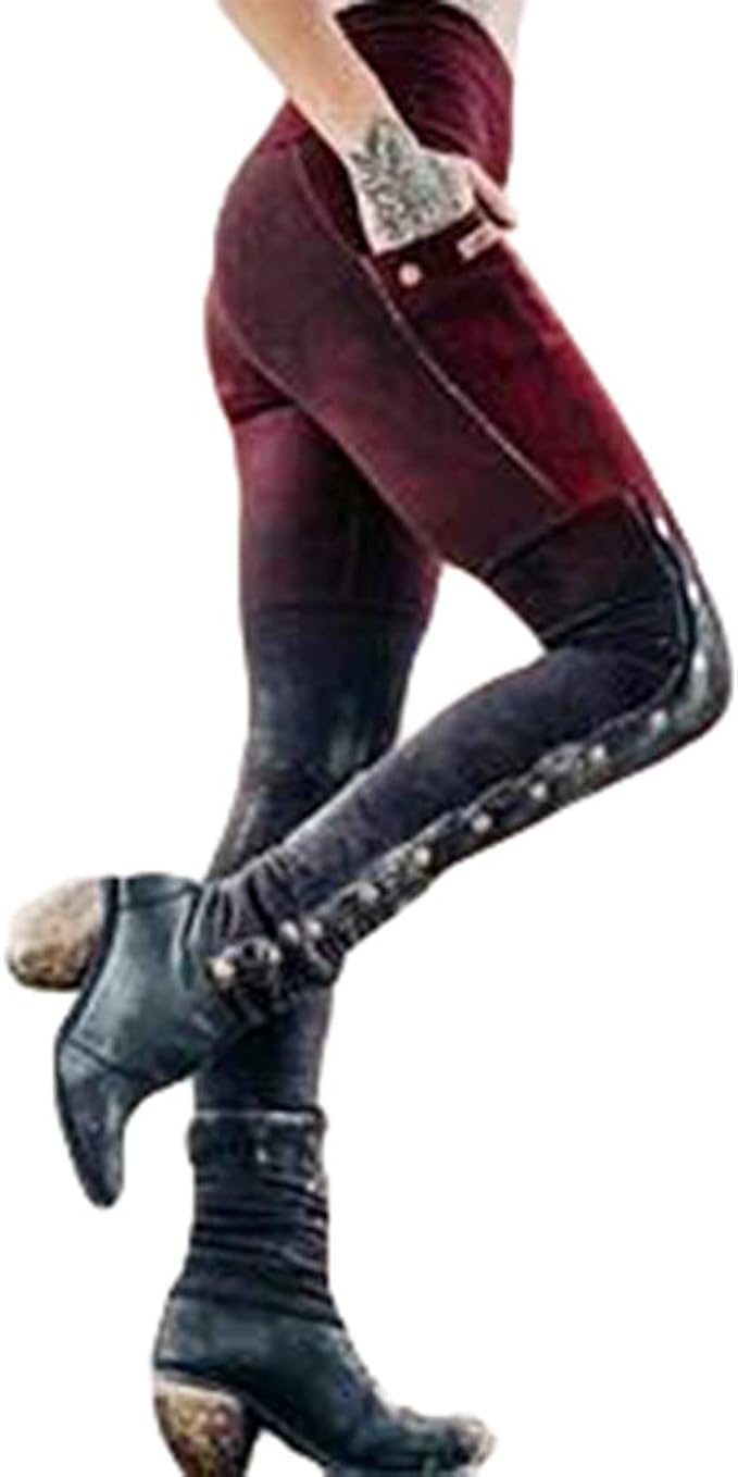 Junkai Gothic Leggings Gothic Hose Fur Frauen Punk Damenmode Coole Hose Damen Casual Leggings Nieten Seitliche Enge Hose Plus Size S 2xl Rock Tights Personlichkeit Amazon De Bekleidung