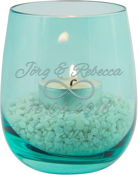 Geschenke 24 Teelicht Zur Hochzeit Mit Gravur Turkis Unendlichkeitssymbol Buntes Glas Windlicht Personalisiert Mit Namen Und Datum Personliche Hochzeitsgeschenke Fur Brautpaar Amazon De Kuche Haushalt