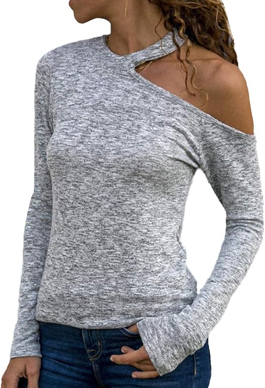 Oberteile Damen Off Shoulder Sexy Langarmshirt Slim Grau Oberteil Longsleeve Rundhals Casual T Shirt Top Fur Damen Amazon De Bekleidung