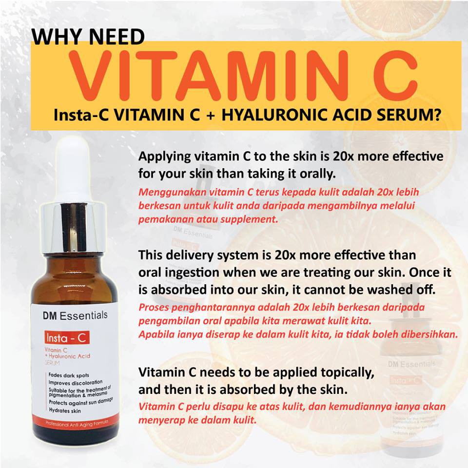 Orders@dmskincarecom For more information on dmSkincare™ products, please email us or. Daily Dose is the first serum to combine vitamin C with SPF Here's how it works the formula contains a stable form of vitamin C (10% 3OEthyl Ascorbic Acid) to tackle dark spots, plus. InstaC serum diformulasi dengan Vitamin C jenis “Advanced & Premium” Formulasi kami SANGAT BERKSESAN & hasilnya akan dapat dilihat hanya dalam beberapa minggu sahaja ===== InstaC VITAMIN C HYALURONIC ACID SERUM Formulasi Anti Penuaan Professional Memudarkan bintik hitam Mencerahkan kulit kusam Berkesan untuk Pigmentasi & jeragat/melasma.