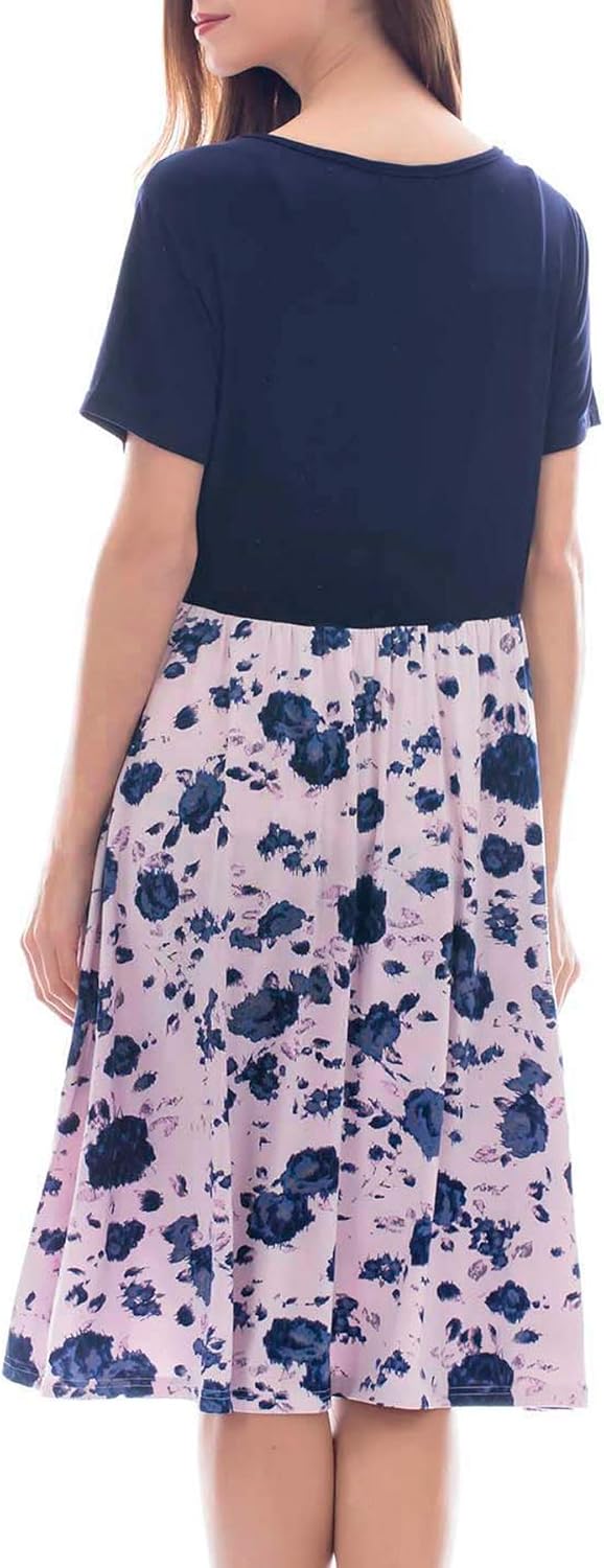 Smallshow Damen Umstandsmode Stillkleid Patchwork Umstandskleid Casual Kurzarm Schwangerschaft Umstands Kleid