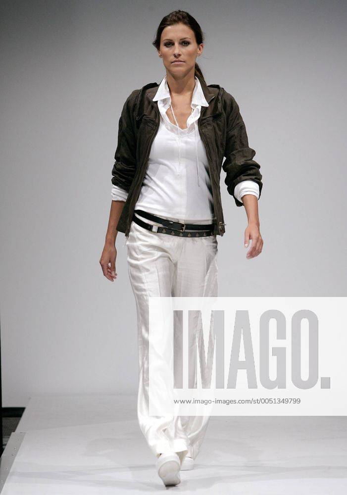 Stockfoto Model Praesentiert Eine Weite Weisse Hose Und
