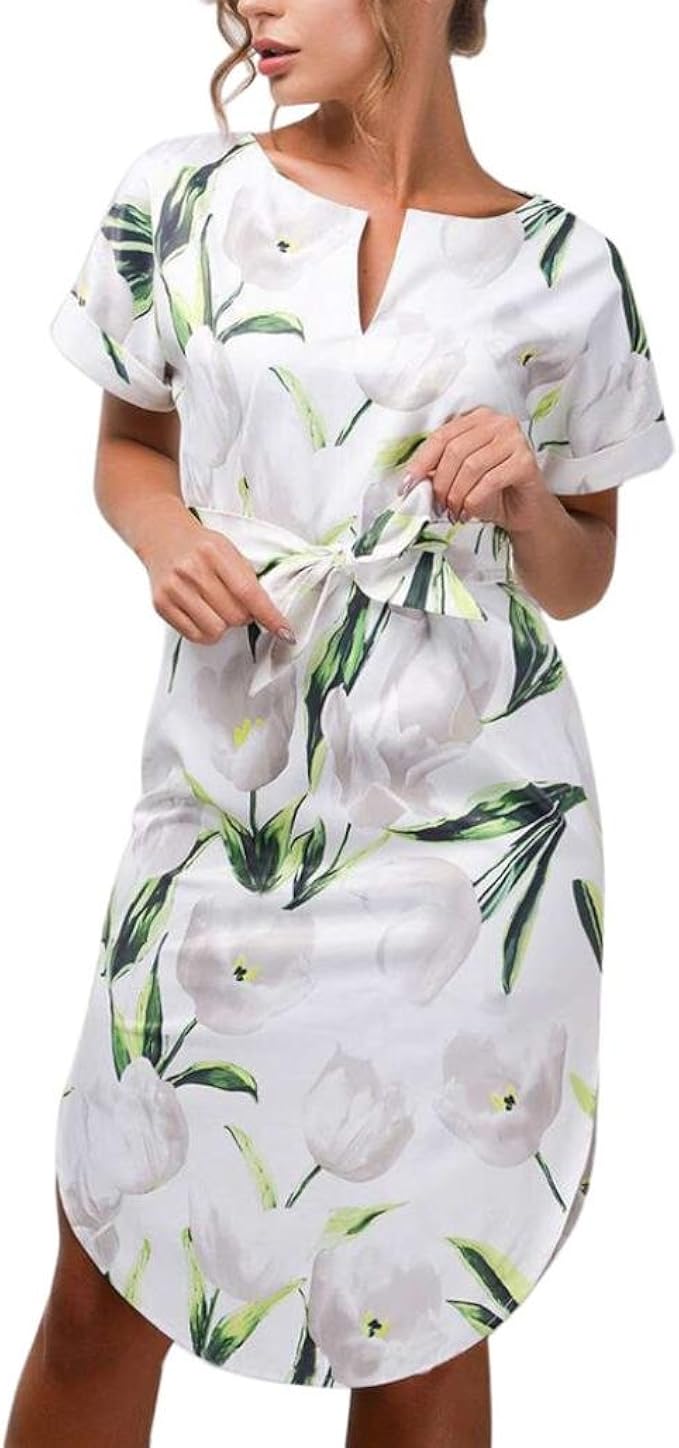 Overdose Mode Damen Blumen Kleid Kurzarm Schleife Verband Mini Split Gurtel Kleid Minikleid Partykleider A Grun 42 De Xl Cn Amazon De Bekleidung
