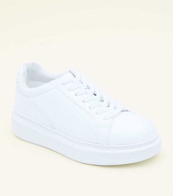 Weisse Sneaker In Leder Optik Mit Dicker Sohle New Look