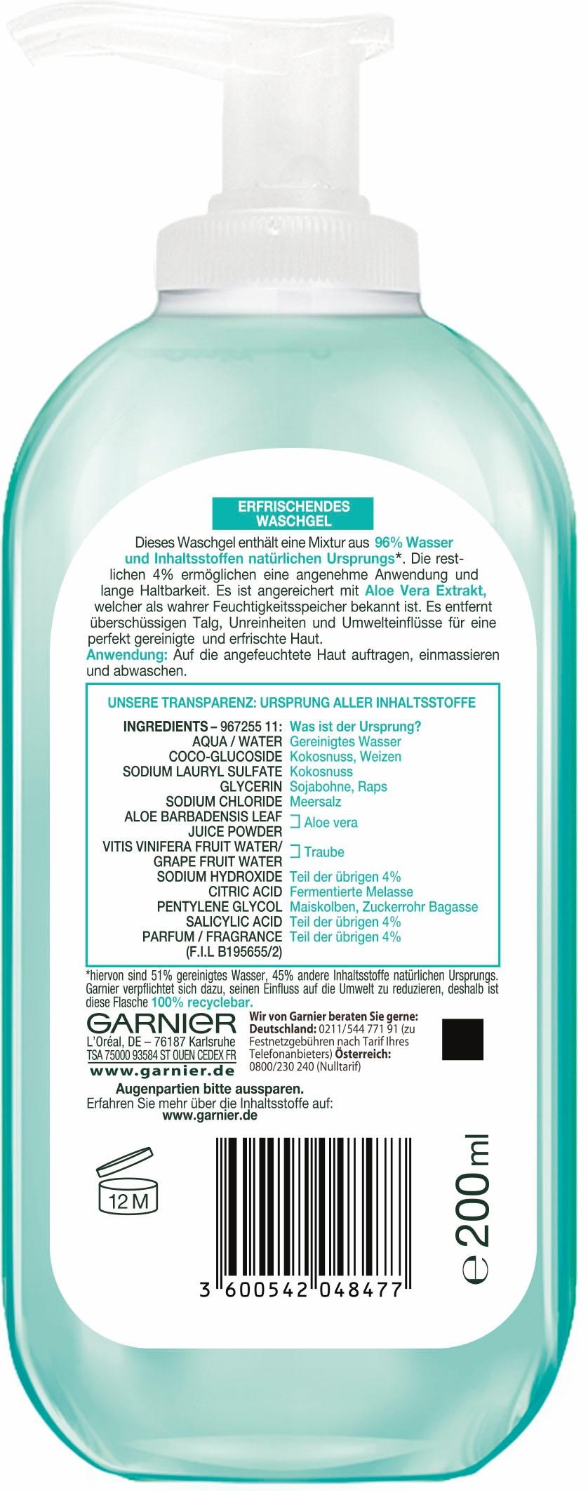 Erfrischendes Waschgel Mit Aloe Extrakt Fur Normale Und Mischhaut Reinigt Klart Und Erfrischt Die Haut Garnier
