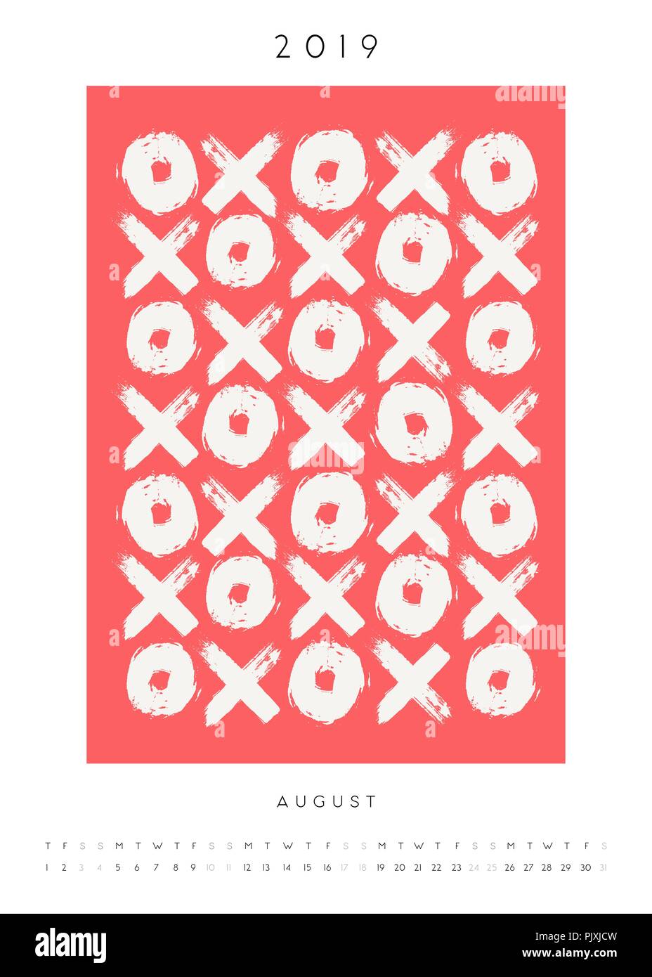 Druckbare Grosse August 19 Vorlage Kalender Hand Gezeichneten Symbole Bedeutung Kusse In Weiss Und Rot Stock Vektorgrafik Alamy