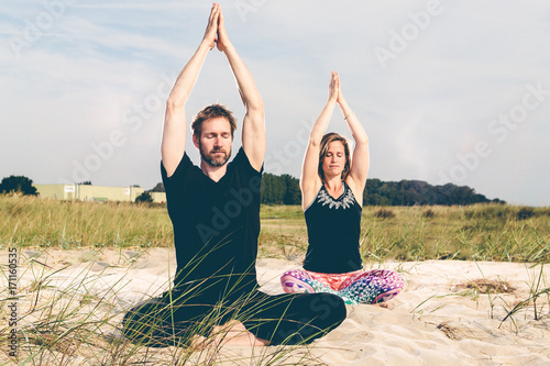 Junges Parchen Wahrend Seiner Yoga Ubungen In Den Dunen Am Strand Buy This Stock Photo And Explore Similar Images At Adobe Stock Adobe Stock