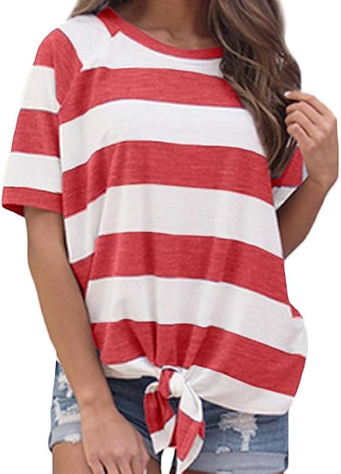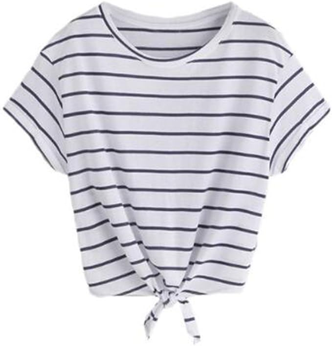 Kurze Streifen T Shirt Frauen Weiss Knoten Vorne Casual Kurzarm Basic Sommer Top Fashion Niedliches T Shirt Aus Baumwolle Amazon De Bekleidung