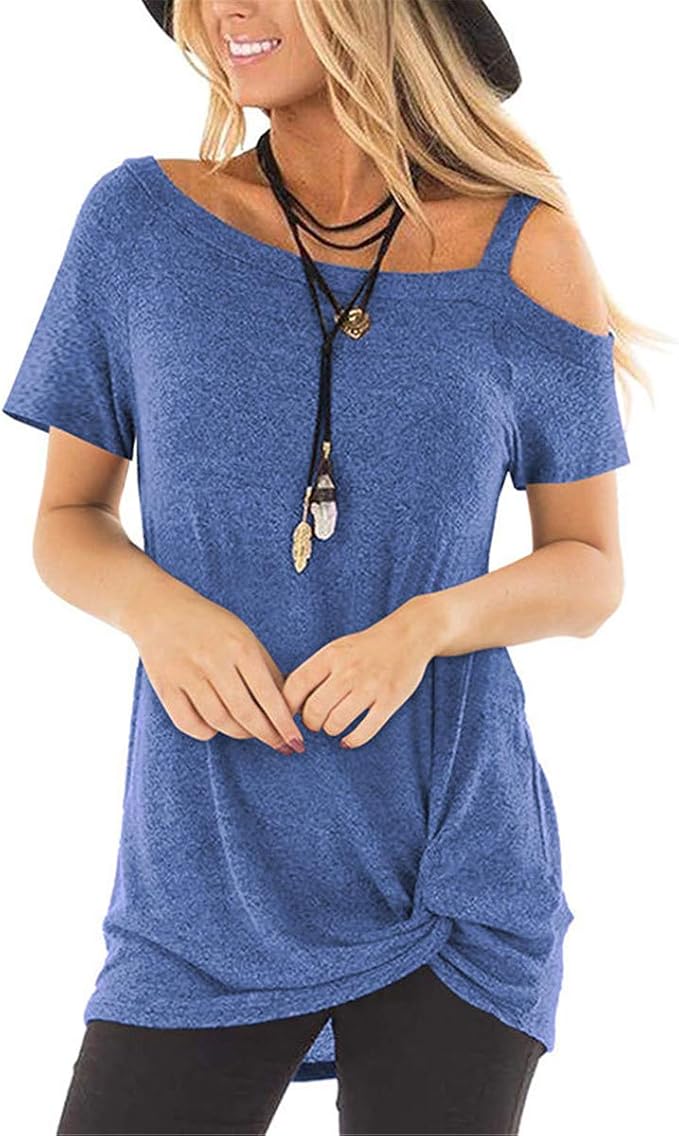Deley Frauen Shirts Schulterfrei Tops Sommer Kurzarm Casual Fashion Knoten Twist Vorne Bluse T Shirt Amazon De Bekleidung