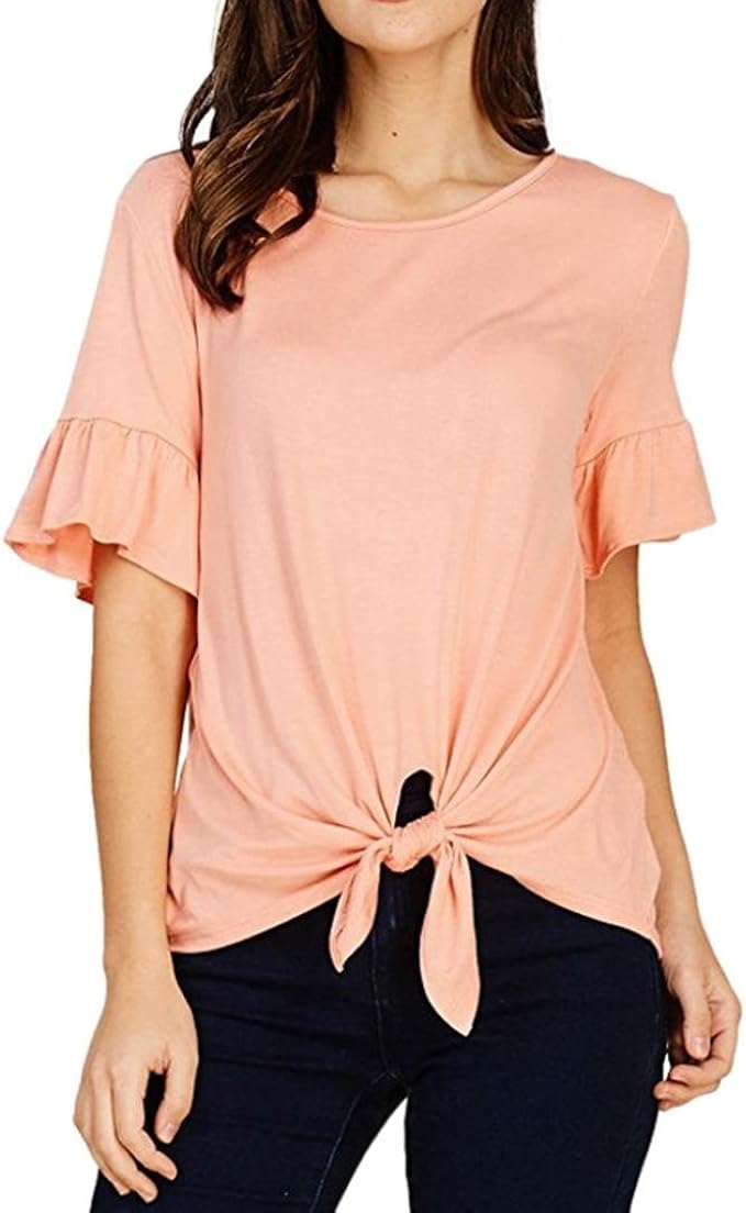 Tuduz Damen Sommer O Ausschnitt Kurzarm Shirt Bluse Vorne Krawatte Knoten T Shirt Blusen Amazon De Bekleidung