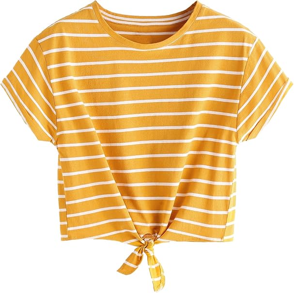 Romwe Damen Knoten Vorn Cuffed Hulse Striped Crop Top Tee T Shirt Amazon De Bekleidung